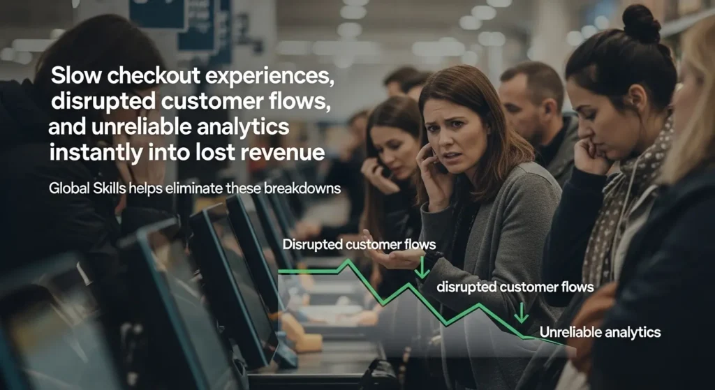 Slow checkouts, broken flows and inaccurate analytics translate directly into revenue loss. Global Skills prevents breakdowns.